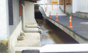 大雨で生活道路が浸水するので水路拡幅が計画されました。
