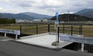 安全な待機場所として水路上にバス停が整備されました。