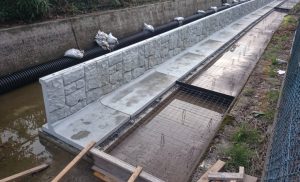 パイプラインの整備にあたり、既存水路の幅を狭くする工事です。