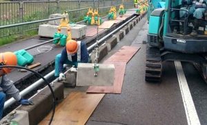 国道歩道整備に伴う、老朽化した消雪用散水設備の維持・修繕工事です。