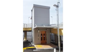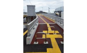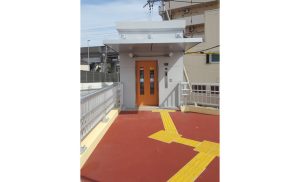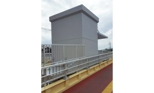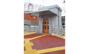 側道橋に昇るためのエレベーターを設置し、バリアフリーを図りました。