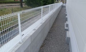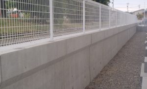 フェンス孔付きの「HS-Pウォール」なら、擁壁天端にフェンスを建て込めるので、意匠上もスッキリします。