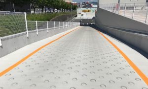 商業施設の「立体駐車場スロープ」「屋上」の転落防止壁をプレキャスト化しました。