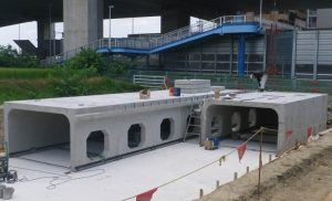 公共施設建築の開発造成に伴う地下式調整池(貯水槽)で、上部空間は駐車場に使用される計画でした。