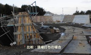 近くで施工された現場打ちの施工の様子と比較をご覧ください。