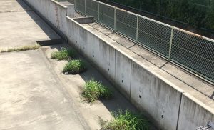 少量排水を留め置かないよう、調整池内(河床部)に導水U字溝を敷設しています。