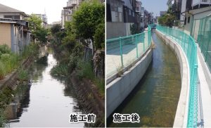 大雨などで溢れて困っているけど、民家が隣接していて水路を拡げるスペースがない。