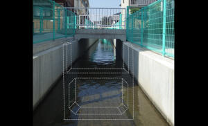 そこで、『みみ付のボックスカルバート』 と『オープンシールド工法』 を組み合わせて、通常時は「上」の水路のみに水が流れ、大雨時は「下」の水路に流入させることで、流量能力をUPさせました。