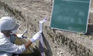 農業水利施設である用水路の機能保全、長寿命化を図るために、漏水が発生している目地部の補修工事を行いました。対象の現場打ち水路は30~40年前のもので、残存する耐用年数も考慮し、安価で一般的な目地充填工法「HSシーリング工法」が採用されました。この工法はポリウレタン樹脂を主材料とした弾性シーリング材で、伸縮への追従や耐候性に優れています。農林水産省策定の「開水路補修・補強工事マニュアル(案)」の品質規格に適合している工法です。