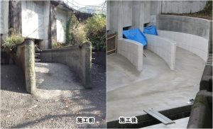 流水の影響を受け、摩耗しやすい通水部は「ASフォーム工法」を、上部の構造物は