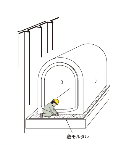 均しコンクリートの上にカラ練りした敷モルタルを施し、製品を据付けてください。