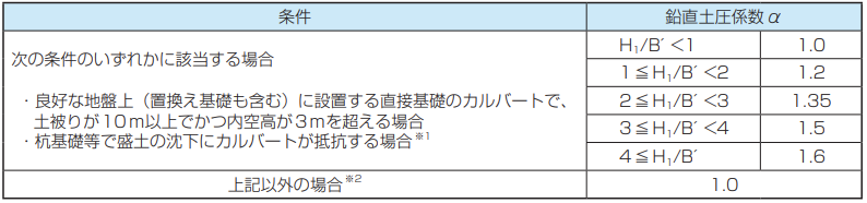 ※2 盛土の沈下とともにカルバートが沈下する場合で軟弱地盤上に設置する場合も含む。