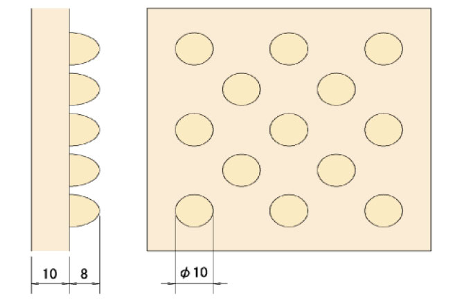 ❸ パネル裏面突起は凸凹に形成されており、裏込め材との付着性に優れています。