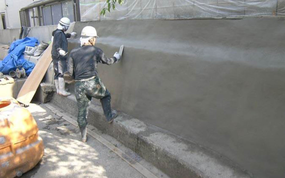 ❻ プレミックス材料である為、水と混練りするだけで、「左官」・「吹付」の双方で施工が可能です。