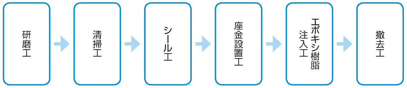 ❻ 注入材(CH-E10)は湿潤面においても施工可能で、硬化・接着不良を起こさず、良好な接着性を発揮します。