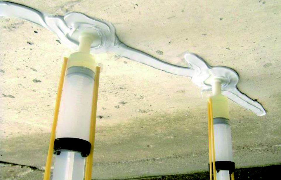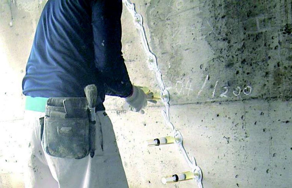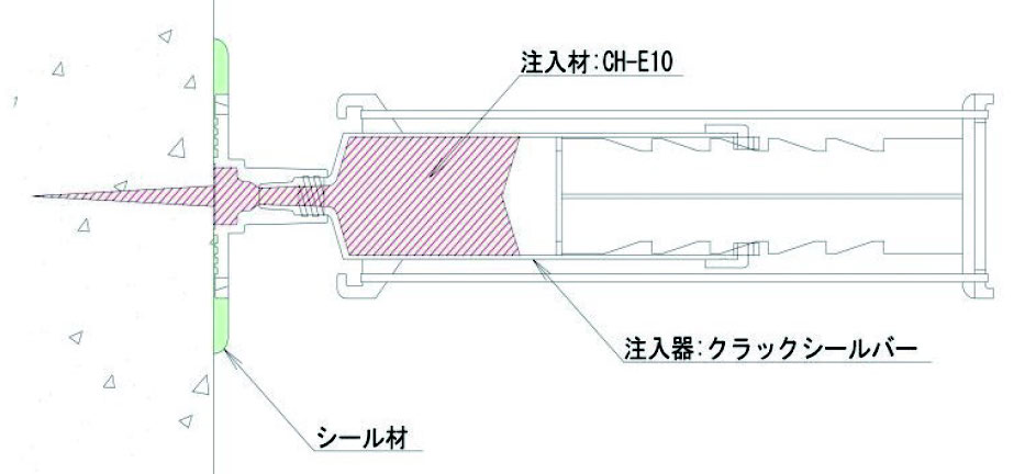 ❻ 注入材(CH-E10)は湿潤面においても施工可能で、硬化・接着不良を起こさず、良好な接着性を発揮します。