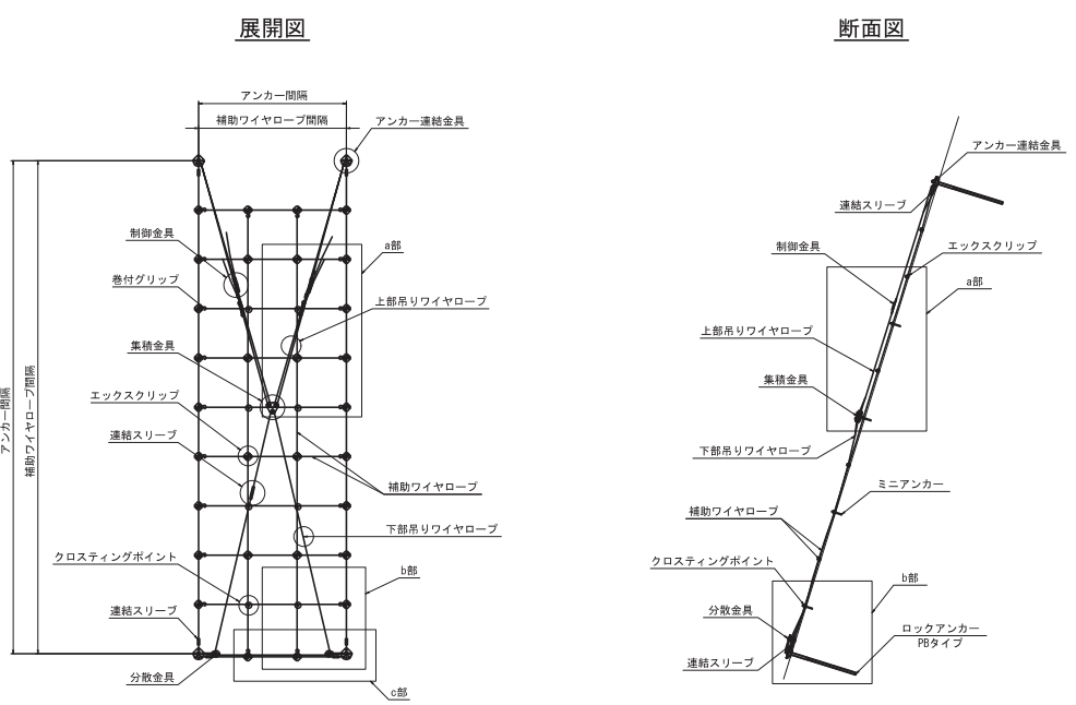 複数の岩塊を一体化することでアンカー設置間隔を標準で縦10m、横3mまで広げることでアンカー本数を削減できます。