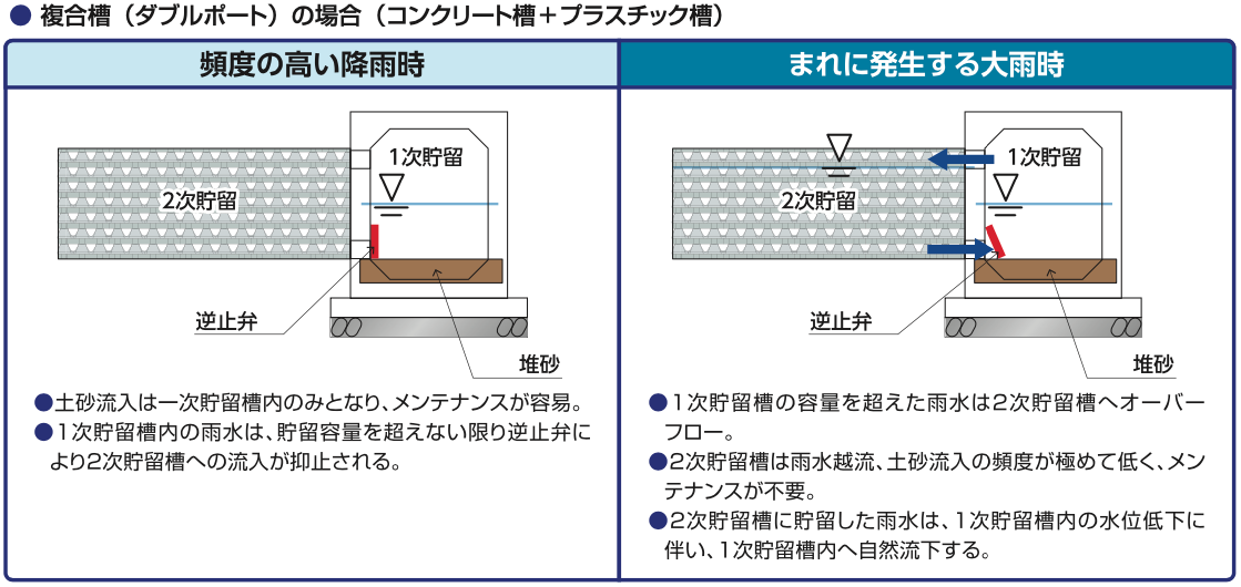 二次貯留部にプラスチック槽を利用することで経済的なシステムが構築できます。