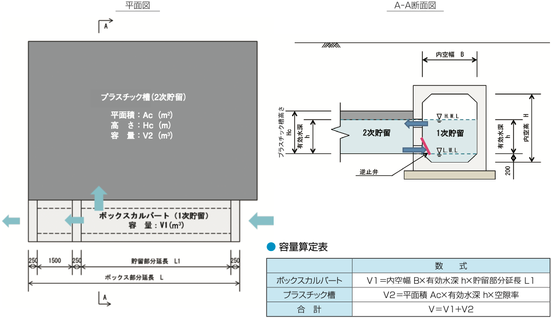 🔳ダブルポート 1 次貯留部のプラン例(BOX カルバートタイプ)