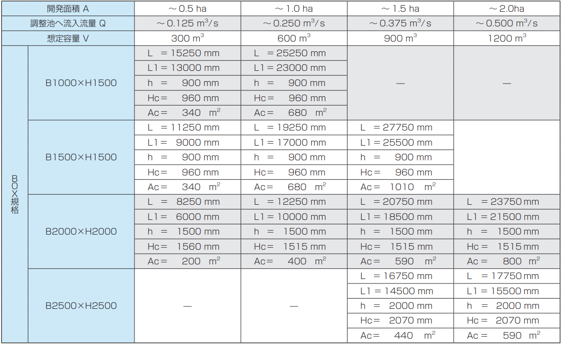 ※1 Qは降雨強度100(mm/hr)、流出係数0.9として合理式により算定