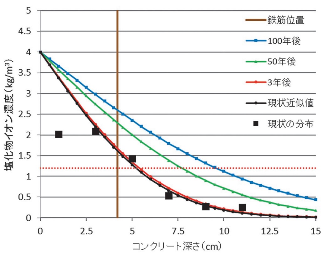拡散係数から将来の塩化物イオン量を予測