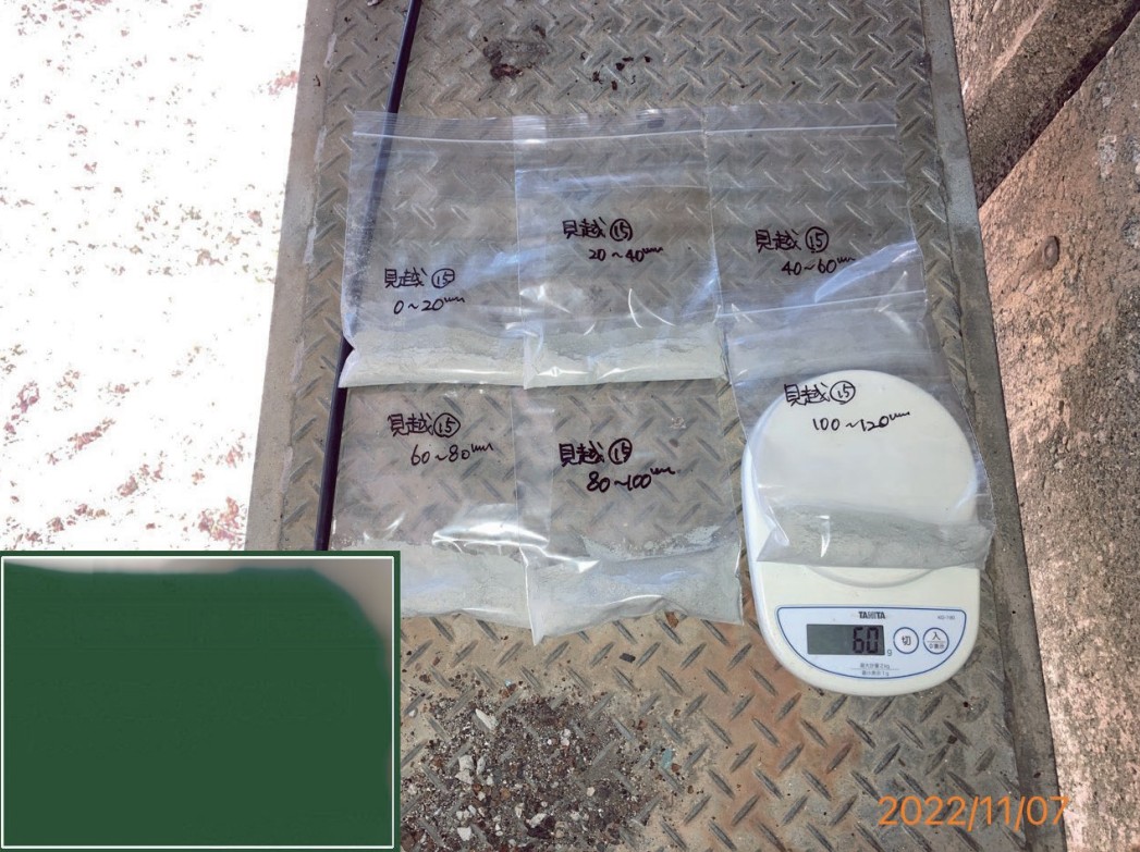 各深さ毎にドリル粉を採取