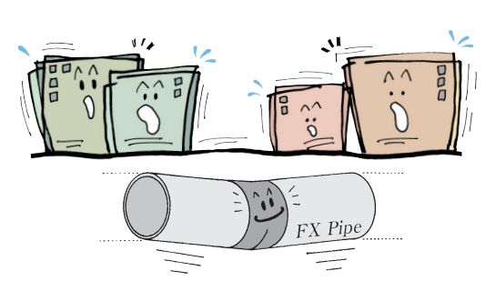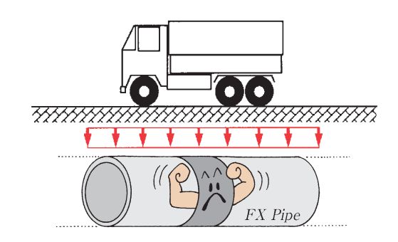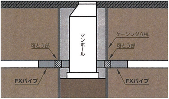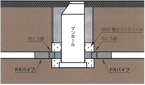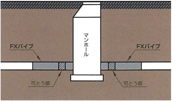管に曲げ荷重が働く箇所にFXパイプを敷設し、管の破損を防ぎます。