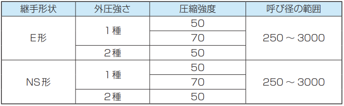 ※管の外圧強さと圧縮強度は、日本下水道協会規格 JSWAS A-2、A-6に準じ ます。