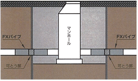 可とう部の止水性能は、屈曲時においても0.2(MPa)の水密性能があるので地震時の土砂の流入を防ぎます。