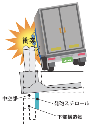 なお、衝突事故が発生した場合も中空部を設けて設置されたGベースは、下部構造物に衝突荷重を与えません。