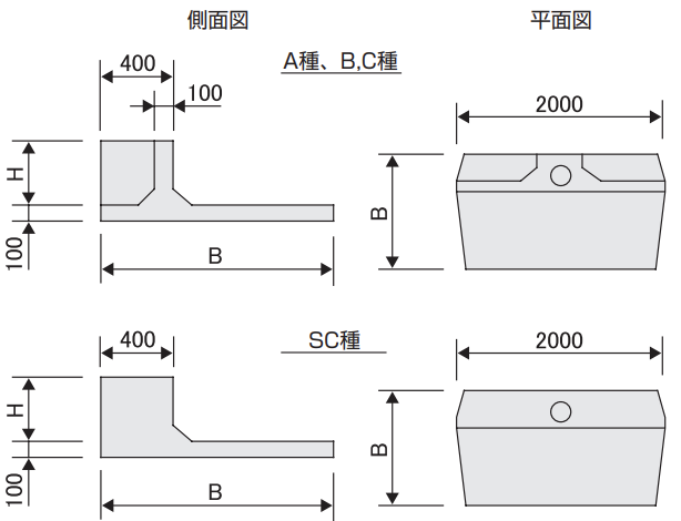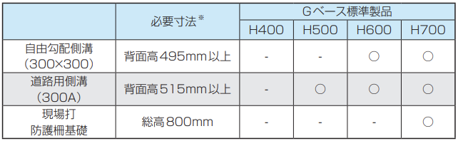 ※必要寸法は、各側溝の最低規格の総高に高さ調整のコンクリート、モルタル、砕石等を 考慮した値。