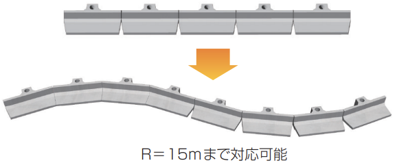 ・曲線施工R15m対応以外にも、屈曲部などの対応も可能です。