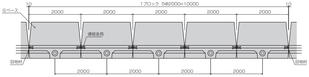 ※目地材について、車両事故等により余儀なくGベースを取り換える場合には、目地部間にて10mmのクリアランスを利用し、スムーズに行えます。