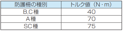 防護柵の種別と締め付けトルクについて