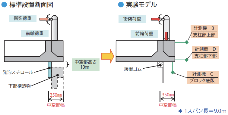 なお、衝突事故が発生した場合も中空部を設けて設置されたGベースは、下部構造物に衝突荷重を与えません。