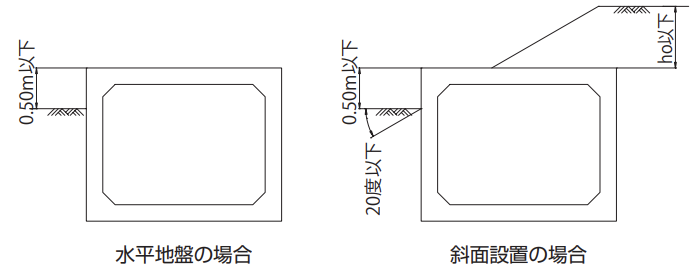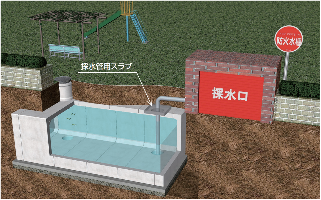 防火水槽(40m3 )では、半地下式の設置が可能です。(露出高500mmまで、耐震性貯水槽は不可)
