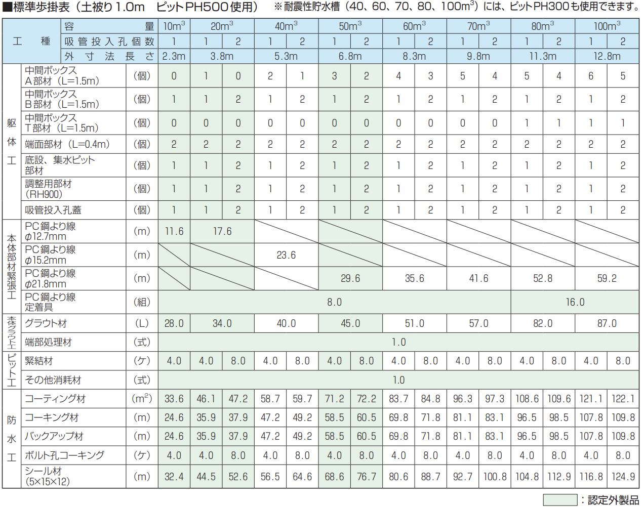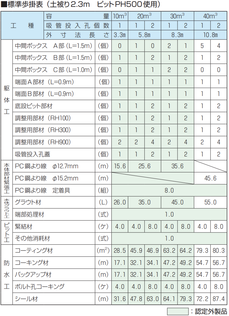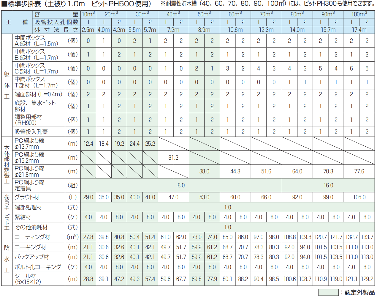 ・ピット部材PH500を2個使用の場合