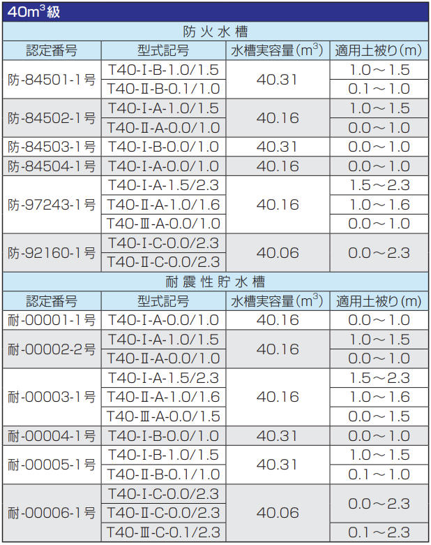 HC式防火水槽・HC式耐震性貯水槽は、一般財団法人日本消防設備安全センターの型式認定を取得しています。昭和59年に型式認定第1号を取得して以来、規格タイプ、対応容量などラインナップの充実化を図っています。