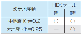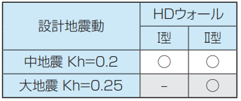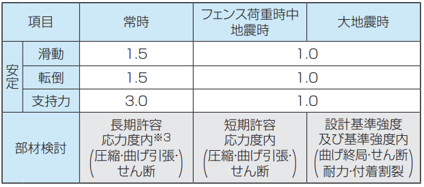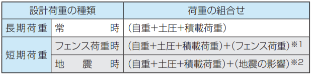 ※2 擁壁の自重に起因する地震時慣性力に地震時土圧を加えた荷重とする。また設計水平震度khは中地震時=0.2、大地震時=0.25とし、鉛直震度K=0とする。