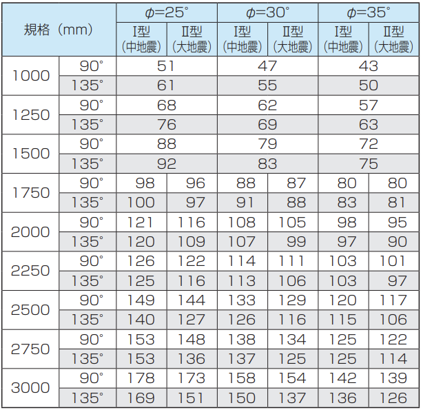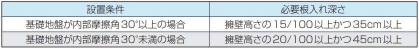 ❶ 背面土および基礎地盤の内部摩擦角については25度以上であること。