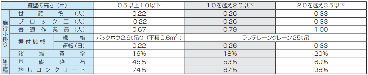※1 本歩掛は、国土交通省土木積算基準の値を参考にしたものです。