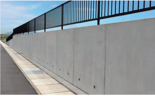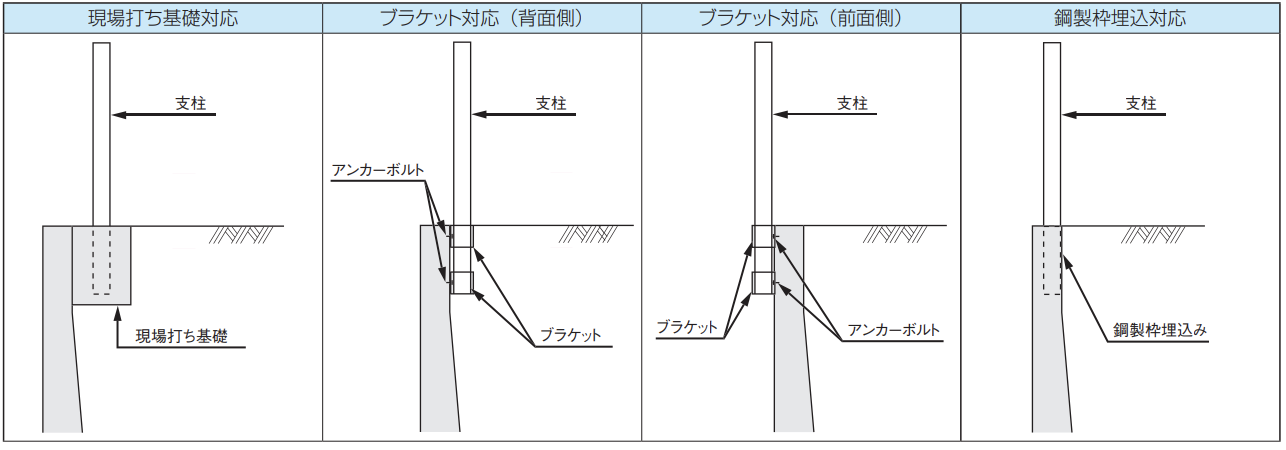 フェンス設置については、以下の方法によりフェンス支柱と前壁を一体化して施工することができます。なお、フェンス高さについては、2mを限度とし、その見付面積率は65%以下としてください。