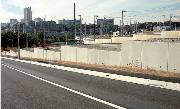 宅地造成等規制法施行令第14条に基づき、国内初で、大地震(設計水平震度kh=0.25)に対応した大臣認定擁壁です。