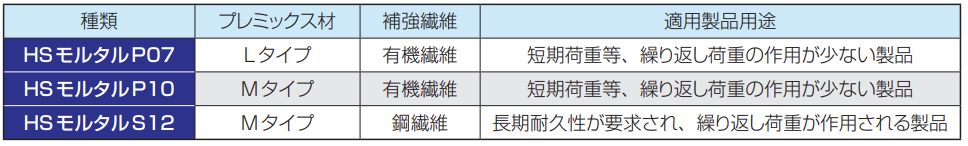 ● HSモルタルの種類