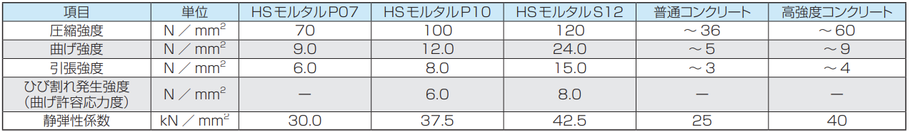 ※強度特性は、所定の養生完了後の設計値です。