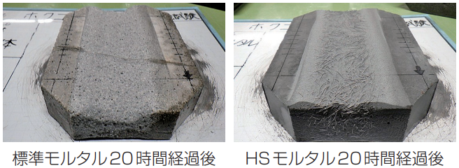 HSモルタルS12の所定養生完了後の収縮量は、250μ以下で、普通コンクリートの約3分の1の収縮量となっております。