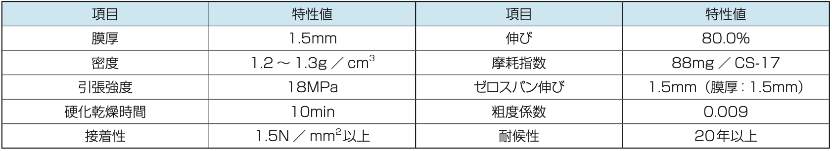 ❻ 塗膜厚は最小厚で1.5mmになります。