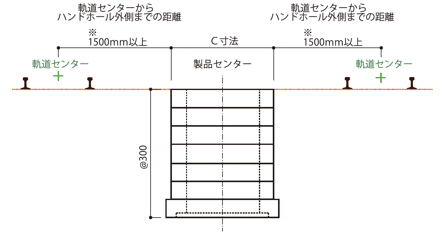 ※2:軌道センターからハンドホール外面までの距離が1500mm以内の設置も可能です。(別途検討要)