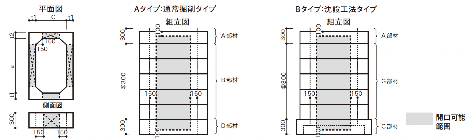 ●Aタイプ(通常堀削タイプ) 仮土留が設置可能な場所