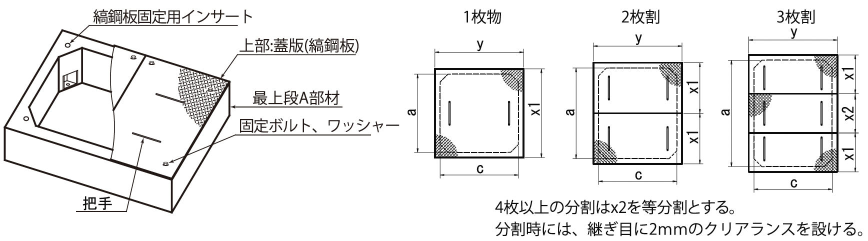 ※3 縞鋼板蓋は人力設置可能な質量で設計しています。